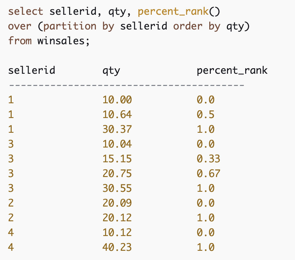 PERCENT_RANK()는 특정 열의 값에 대한 백분위수 순위를 계산한다.