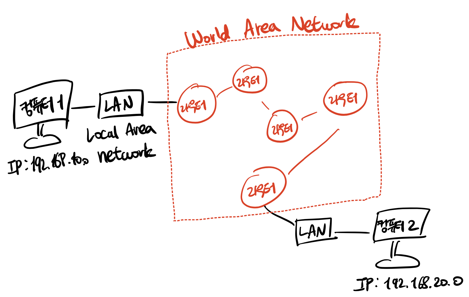 그렇게된다면 허브도 여러개가 필요할 것이고 무엇보다 물리적인 연결이 필요하기 때문에 아~주 멀리 떨어져 있는 컴퓨터는 연결이 불가능하다.