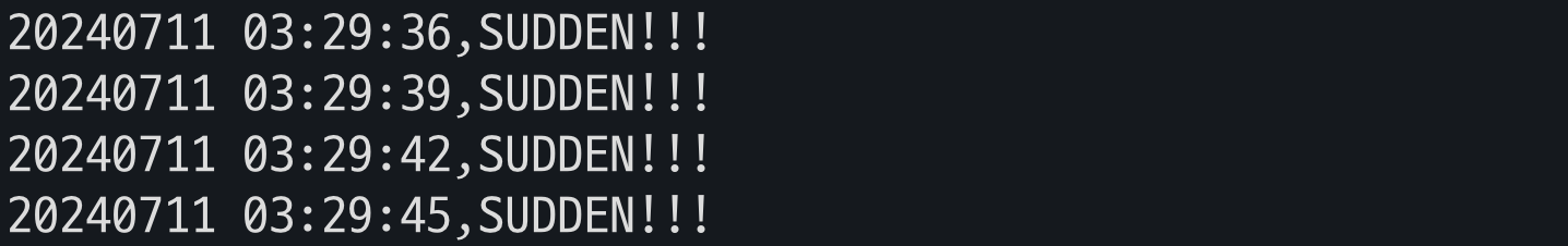 echo "$DATE,SUDDEN!!!"