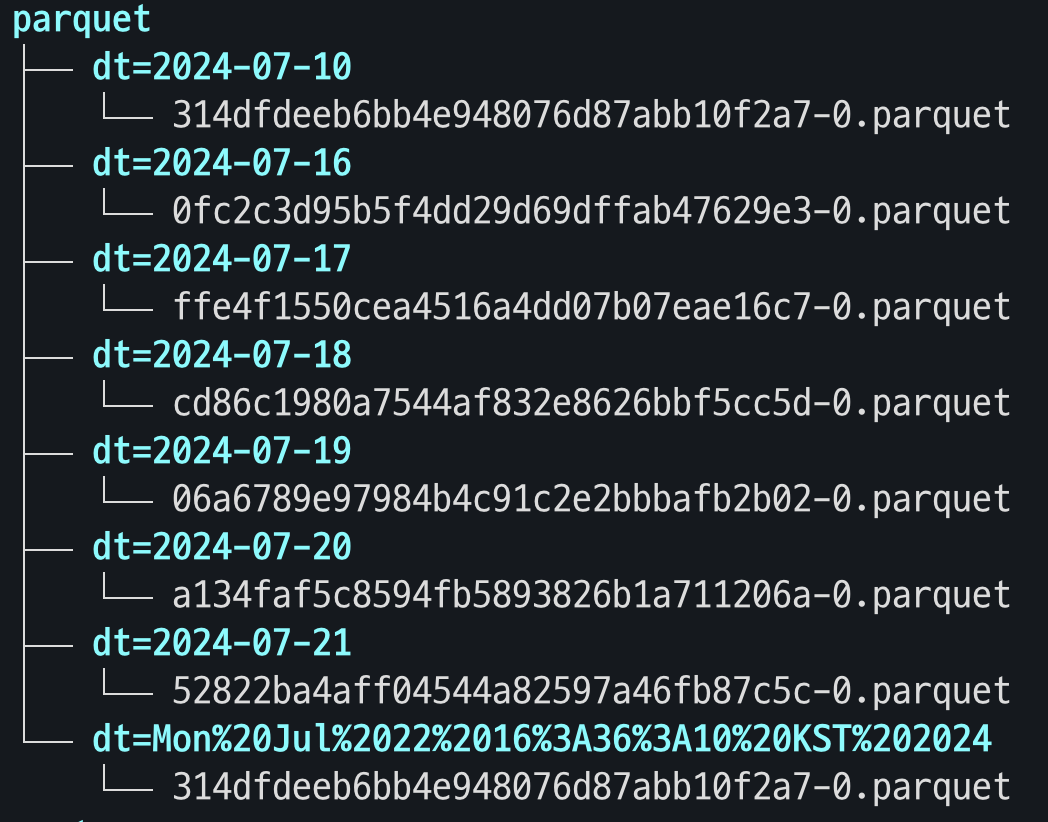 Parquet 형식으로 잘 들어온 것을 확인할 수 있다.