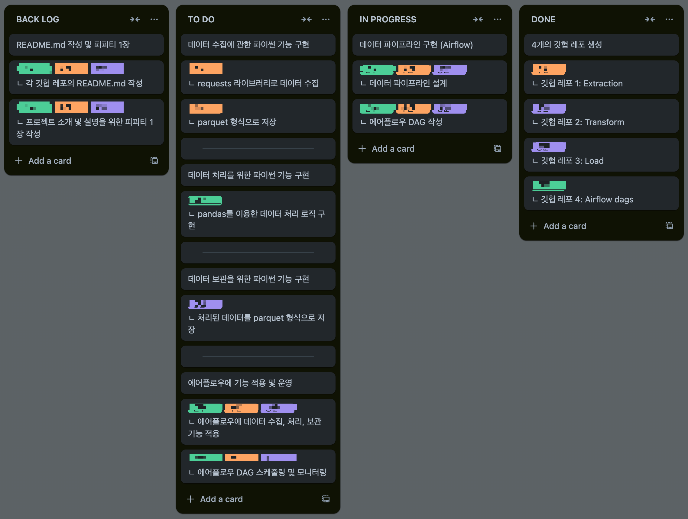 - 영화 박스오피스 데이터 수집 / 처리 / 보관 그리고 에어플로우 운영 총 4개의 깃헙 레포 생성