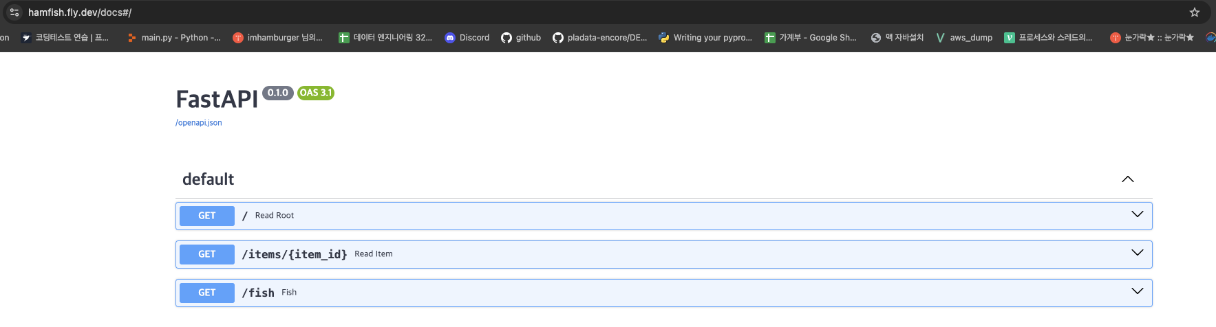 배포가 완료되면 Fly.io에서 제공하는 URL을 통해 애플리케이션에 접근할 수 있다. Fly CLI는 배포가 완료되면 이 URL을 출력해주는데, 웹 브라우저에서 이 URL을 열어 FastAPI 애플리케이션이 잘 작동하는지 확인할 수 있다.