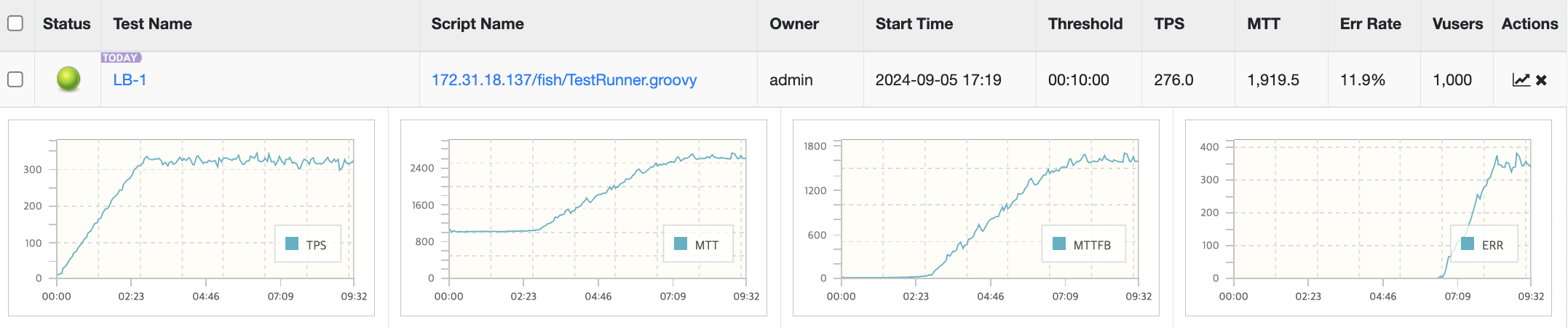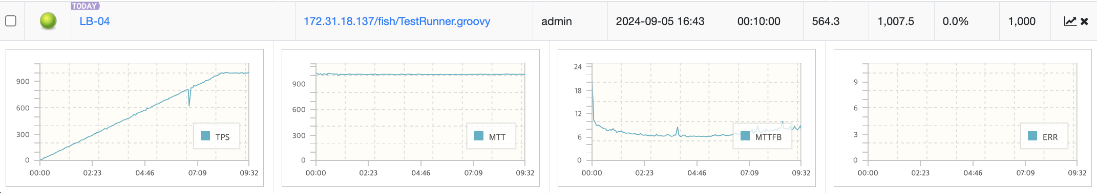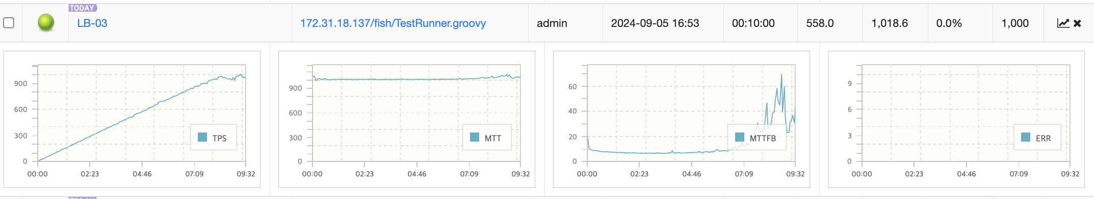 기능 5개가 연결된 로드밸런서를 nGrinder에서 성능테스트를 할 때 <프라이빗 IP 주소>:<포트번호> 로 해야 한다.