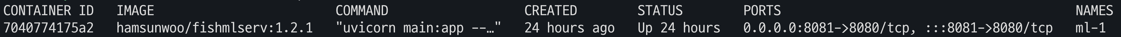docker run -d -p 8081:8080 --name ml-1 hamsunwoo/fishmlserv:1.2.1