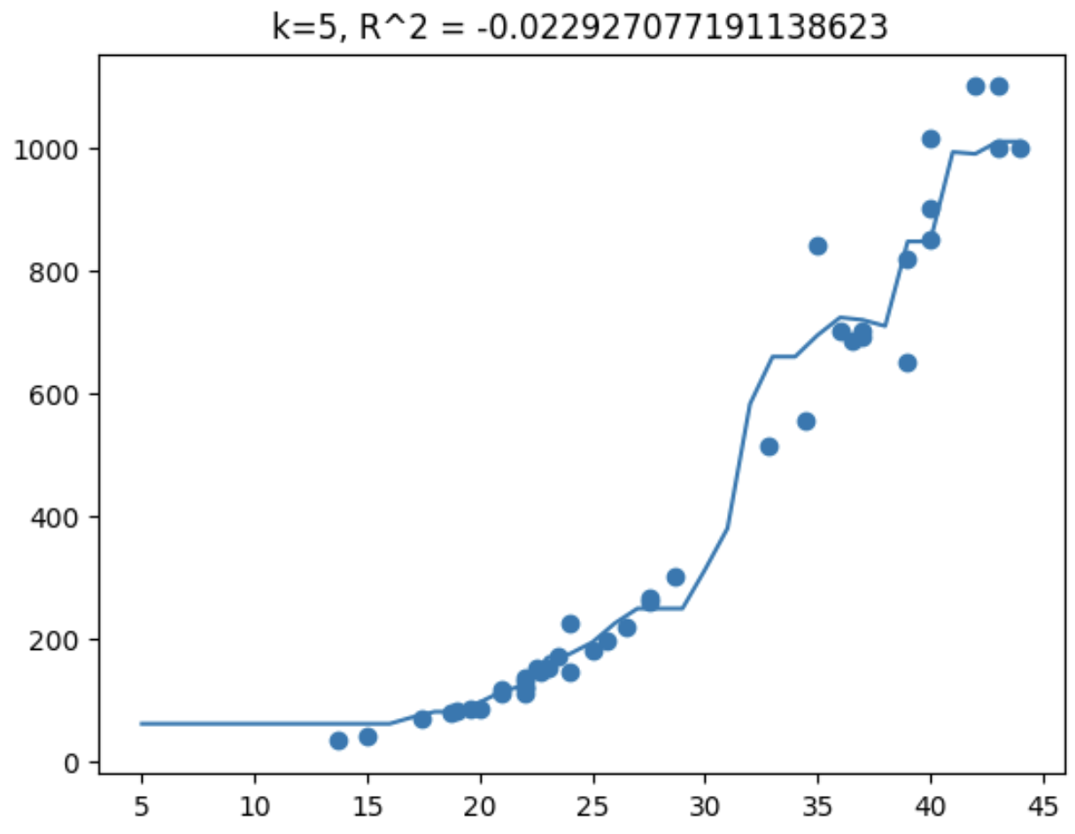 knr.n_neighbors = k