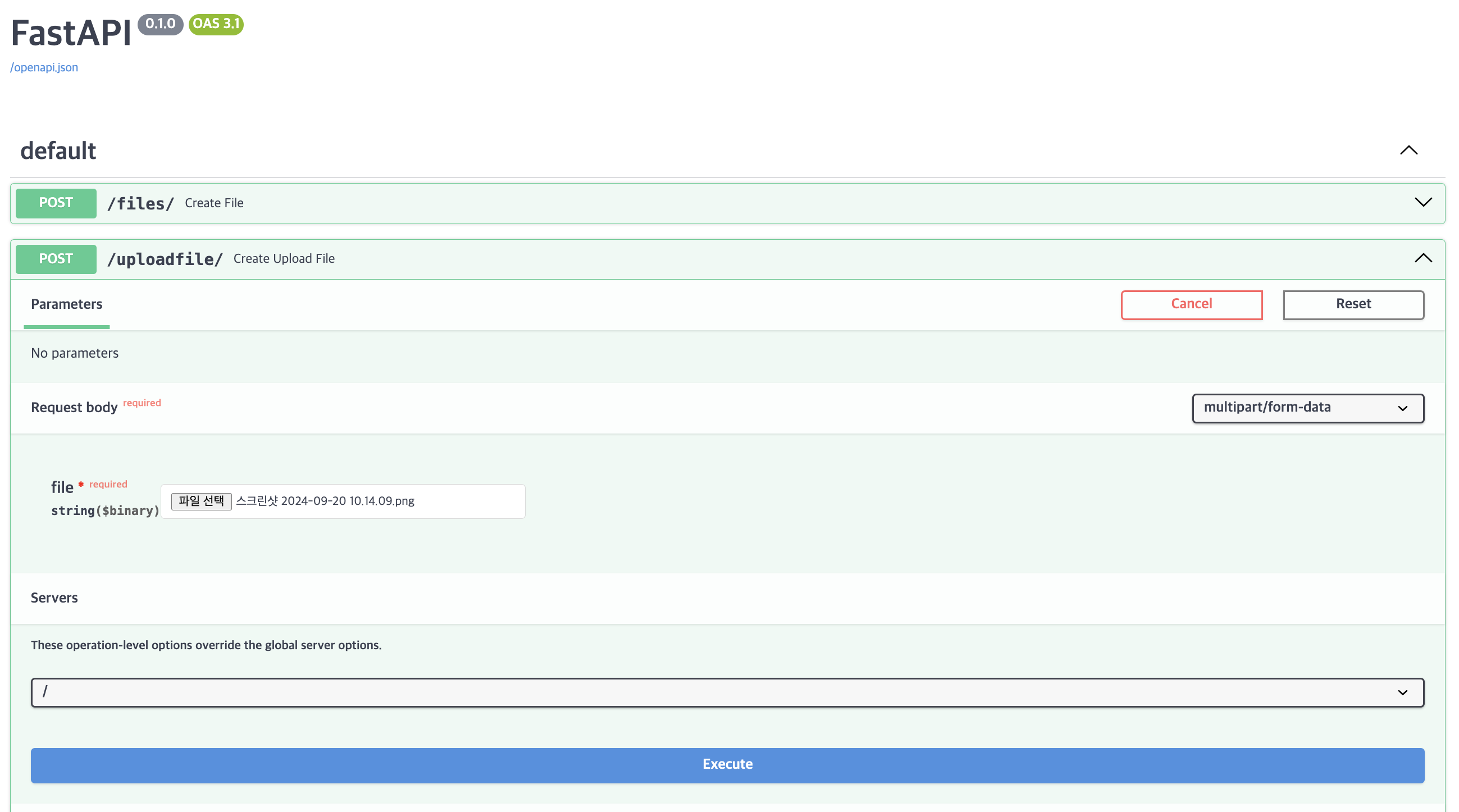 아래 코드는 FastAPI 공식문서를 참조하여 작성하였다. FastAPI에서는 다양한 기능을 간단하게 구현할 수 있어 편리하다.