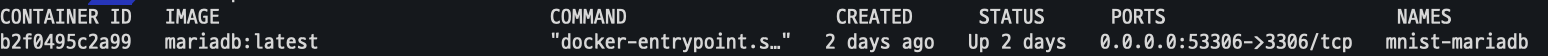 그럼 다음 도커 이미지에 들어가 mariadb에 접속한다.
